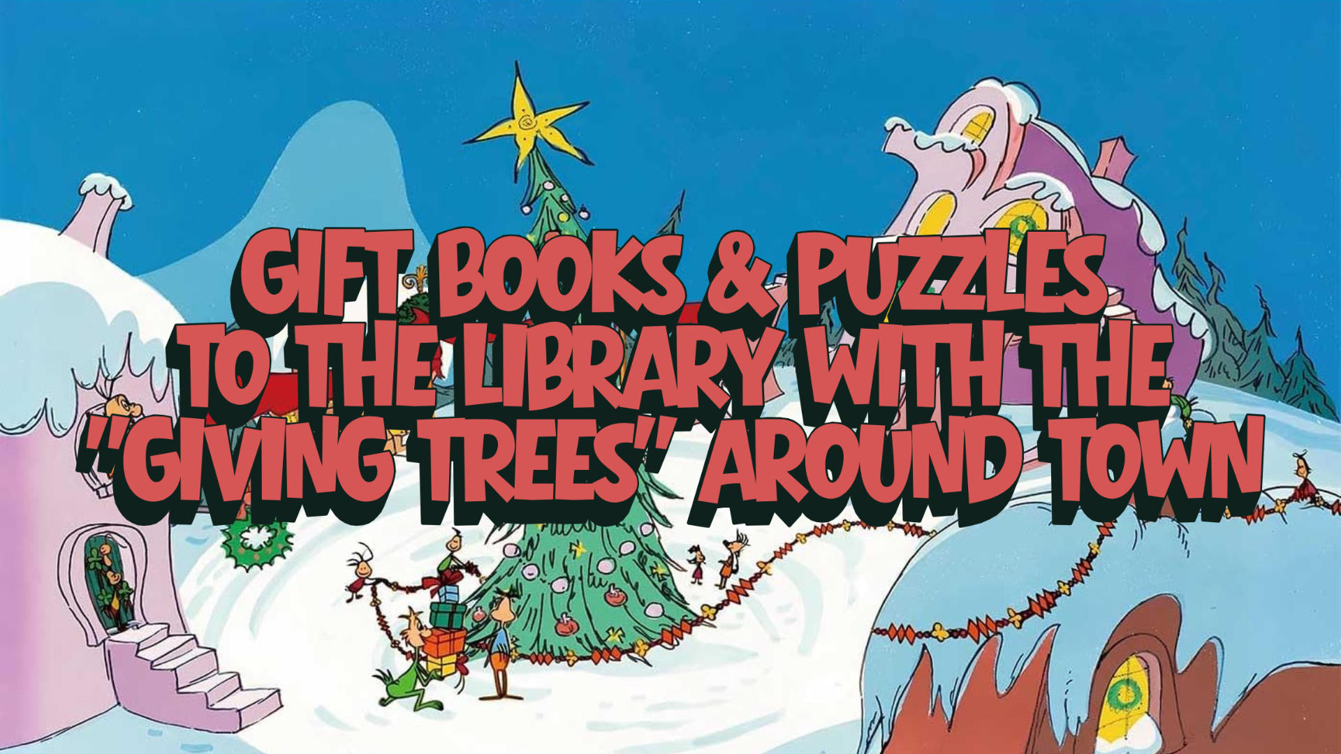 We have “Giving Trees” set up around town, laden with ornaments for gifting much-needed Playaway books and puzzles to the library. You can even commemorate the donation in someone else’s name (like a family member or friend).